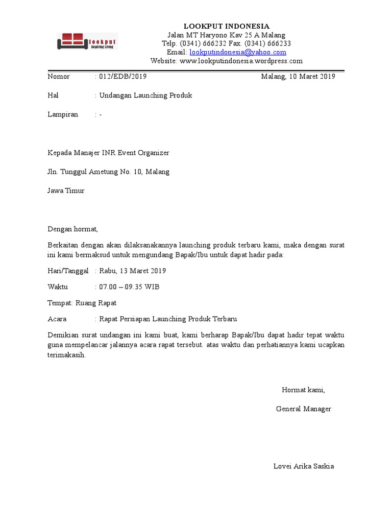 Contoh Surat Undangan Pada umumnya surat terbagi menjadi dua jenis yaitu surat resmi dan surat tidak resmi. Contoh surat undangan launching produk - Untuk melihat gambar lebih jelas pada artikel ini anda bisa klik pada gambar yang diinginkan untuk melihat gambar dalam ukuran asli atau original secara utuh. Namun cara seperti ini sudah biasa cobalah menyebarkan undangan dengan cara yang lebih unik dan menarik.