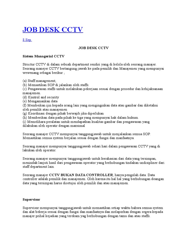Tugas Dan Tanggung Jawab Operator Cctv Mudah