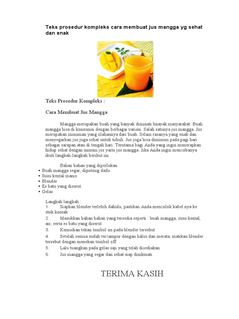 Procedure text jus manggaJika Anda memiliki buah mangga segar buatlah jus mangga sendiri.