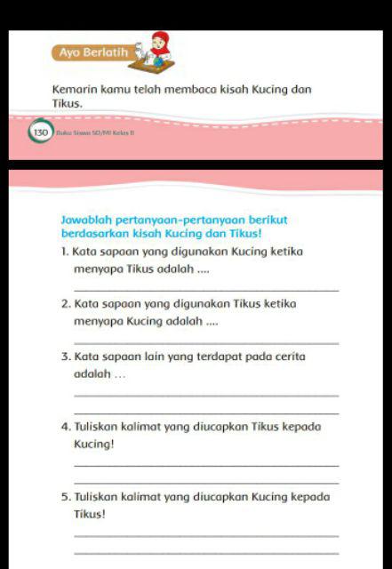 Kunci Jawaban Tema 7 Kelas 2 Hal 131 125 130 Kata Sapaan Yang Digunakan Kucing Ketika Menyapa Tikus Halaman All Tribunkaltim Co
