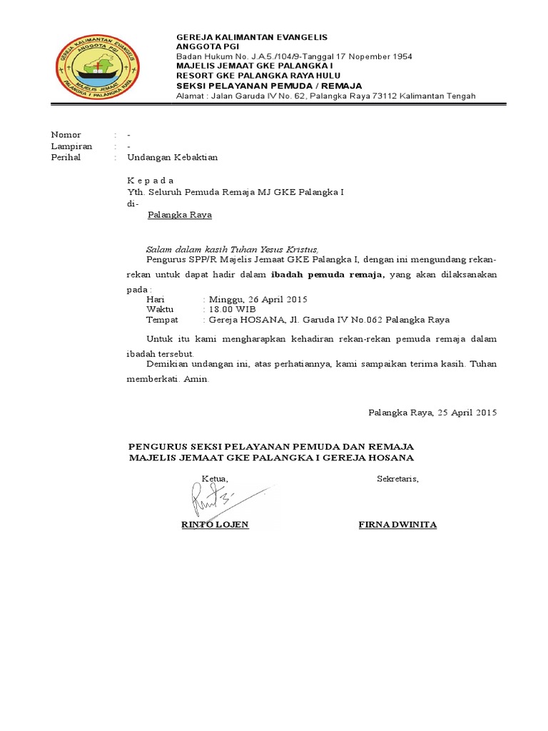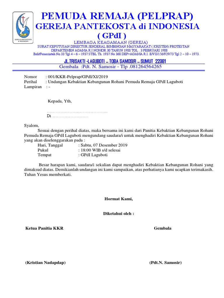 Contoh Surat Dan Undangan Ibadah Pemuda Pdf