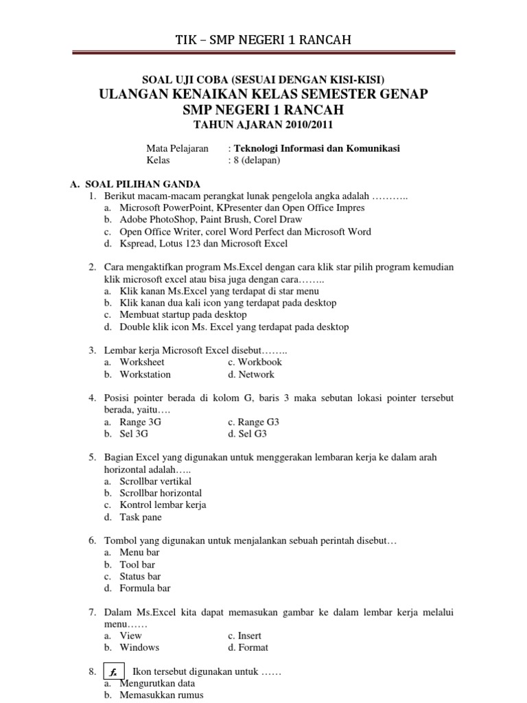 Soal Uts Tik Kelas 8 Smp Labschool Jakarta Cetak
