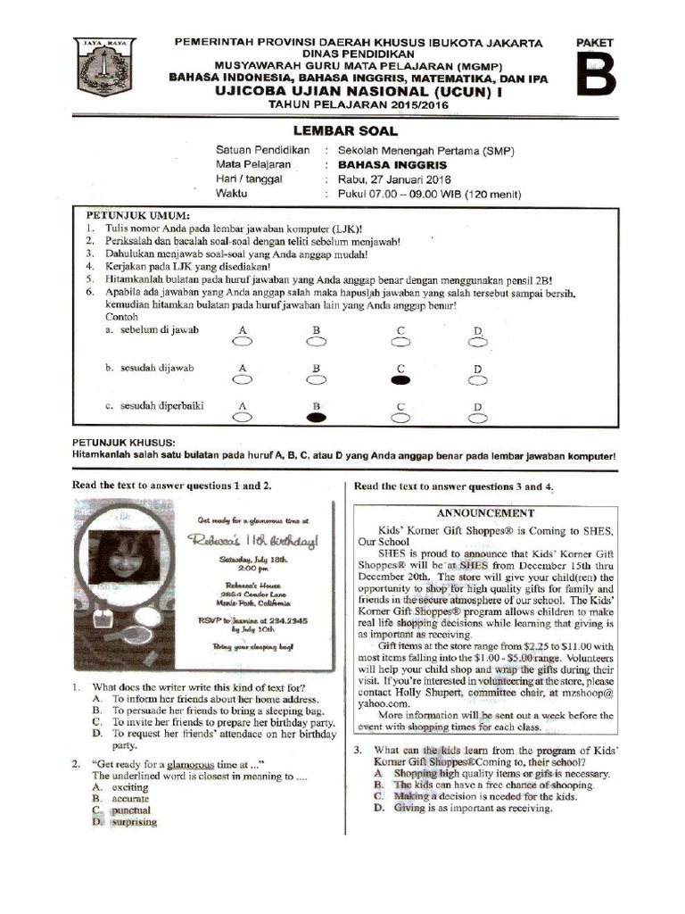 Soal Ucun Uji Coba Un Smp Tahun 2016 Tahap 1