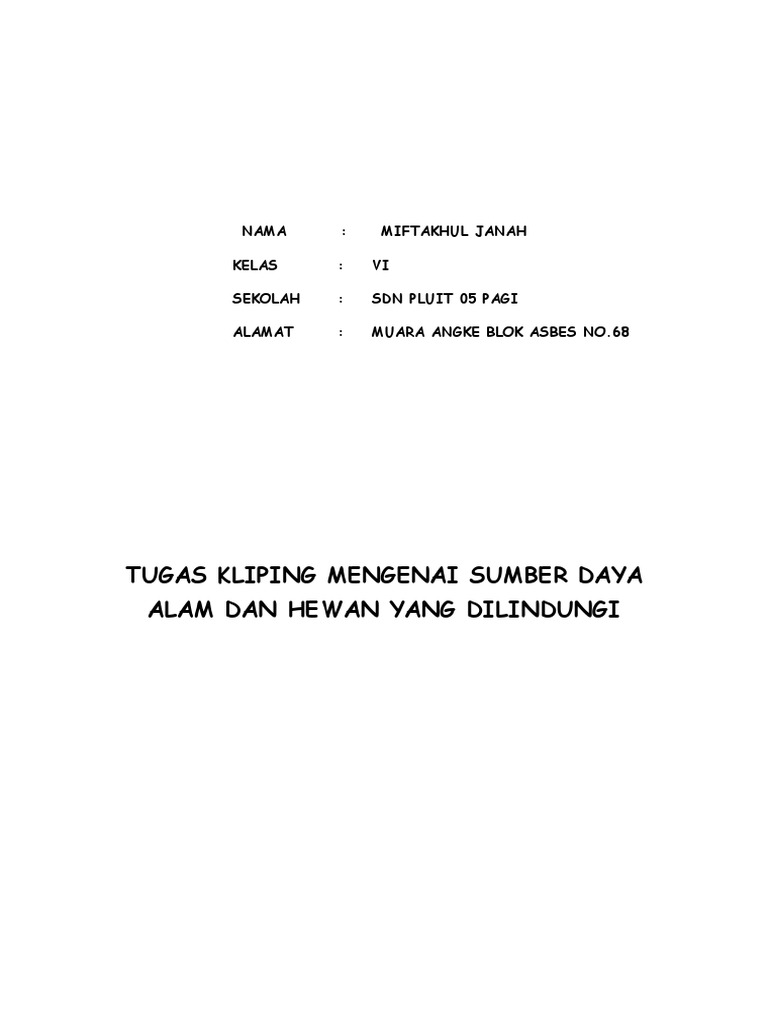 Kliping Kekayaan Sumber Daya Alam Untuk Indonesia April 2020 30 Tugas Kliping Bencana Alam November 2019 1211 Tugas Kliping Bahasa. Air udara tanah hewan dan tumbuhan. View Tugas Kliping Tematik 1docx from PHL 320 at University of Phoenix.