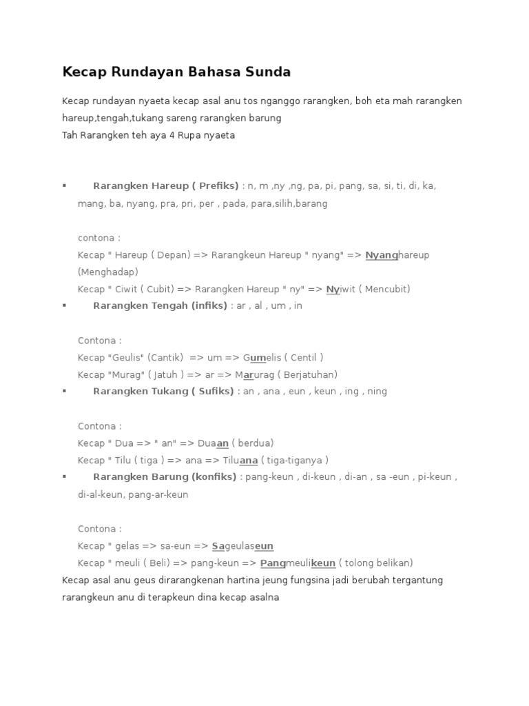 Kecap Rajékan nya éta kecap anu diwangun ku cara nyebut dua kali atawa leuwih wangun dasarna sabagian atawa sagemblengna. Pamekar Diajar BASA SUNDA Pikeun Murid SDMI Kelas VI 19 Pék baé hidep nyieun deui conto. Tulis 2 dua kecap make rarangken hareup para tuluy jieun kalimahna 27.