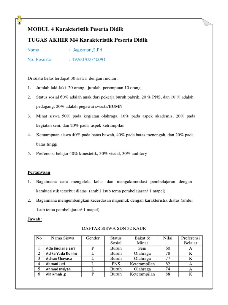 Tugas Akhir Modul 4 Karakteristik Peserta Didik