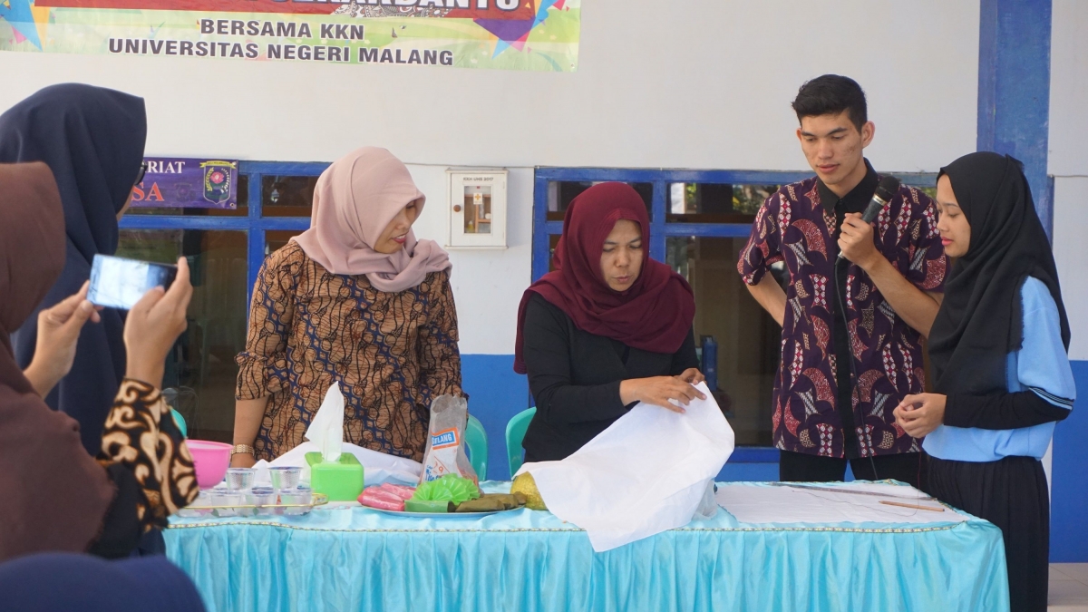 Seni batik adalah seni budaya yang kaya nilai-nilai kehidupan manusia dan lingkungan. Zat pewarna kimia diproseshasilkan secara kimiawi oleh industri. Mahasiswa Kuliah Kerja Nyata KKN Universitas Negeri Malang UM peduli akan keutuhan budaya membatik untuk itu dilakukan kegiatan pelatihan pembuatan batik dengan teknik celup ikat untuk warga desa Sekarbanyu khususnya ibu-ibu PKK desa Sekarbanyu.