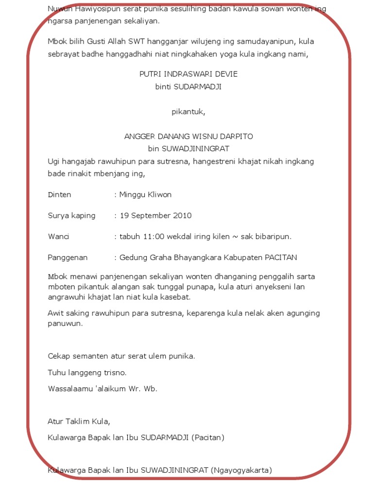 Contoh Surat Undangan Pernikahan. Tuladha serat ulem mantu. Bahasa jawa itu ada beberapa kelas.